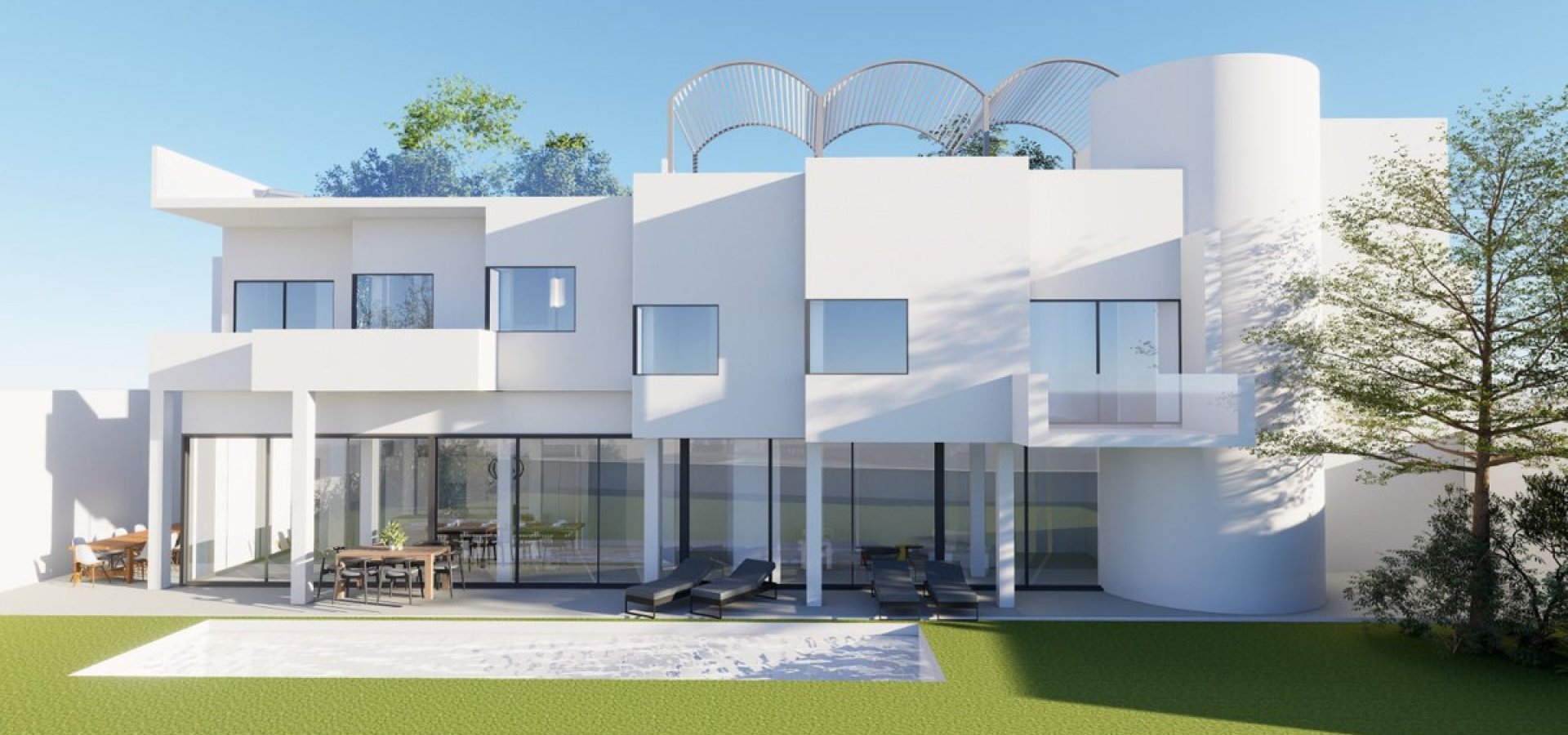 480 m² en varias plantas, con jardín, piscina y terraza.