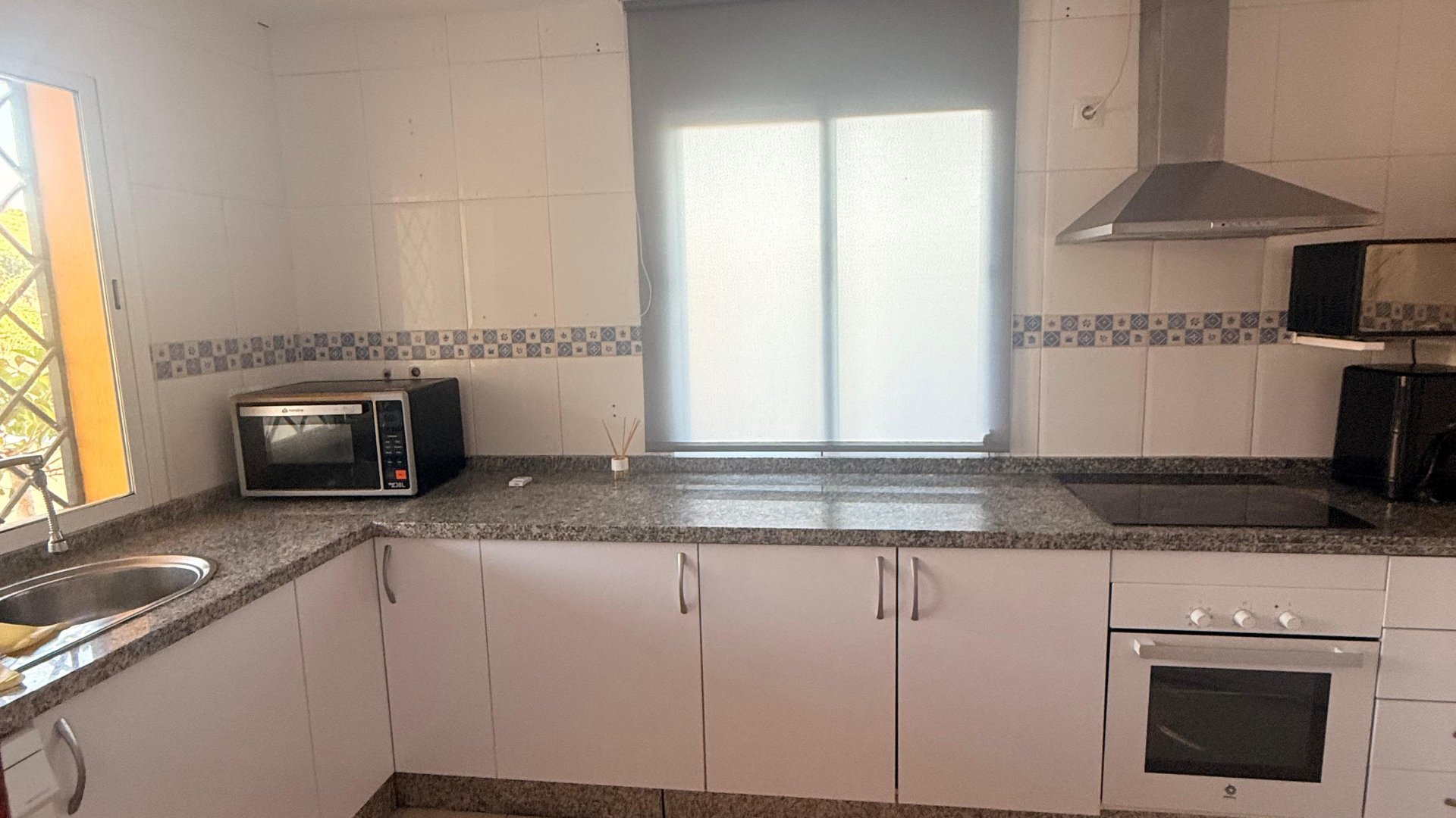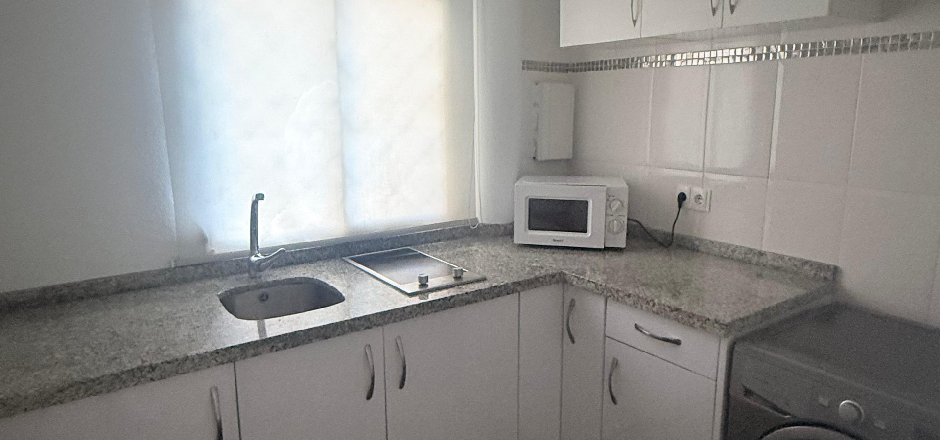 Cocina amueblada y equipada con electrodomésticos.
