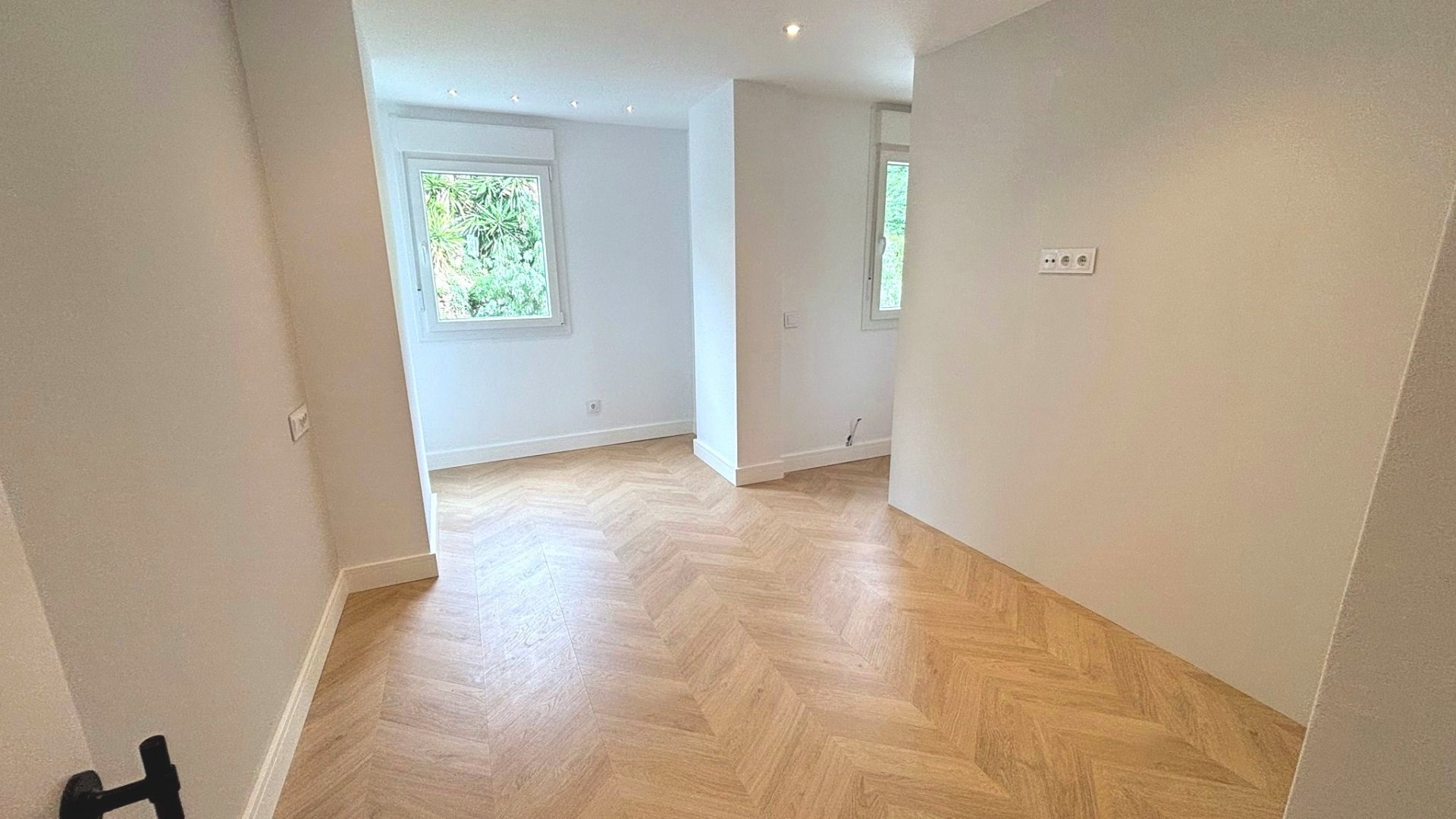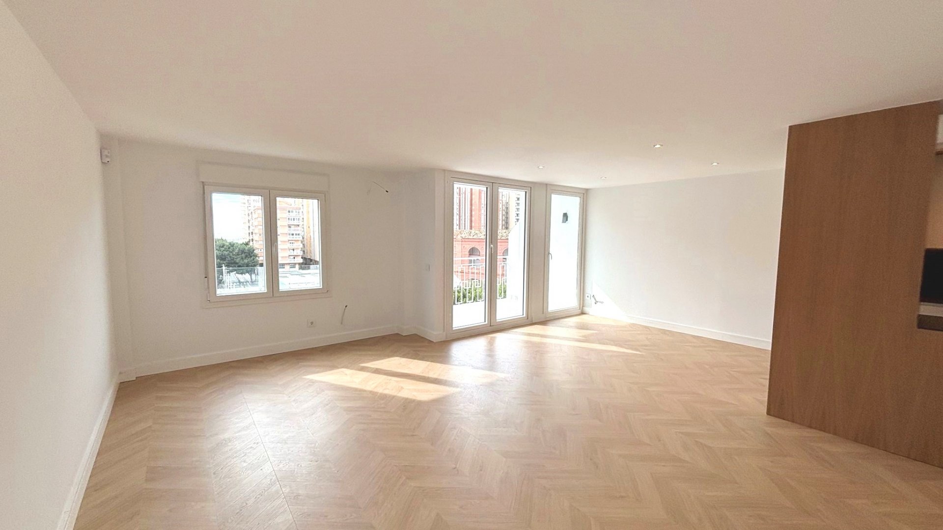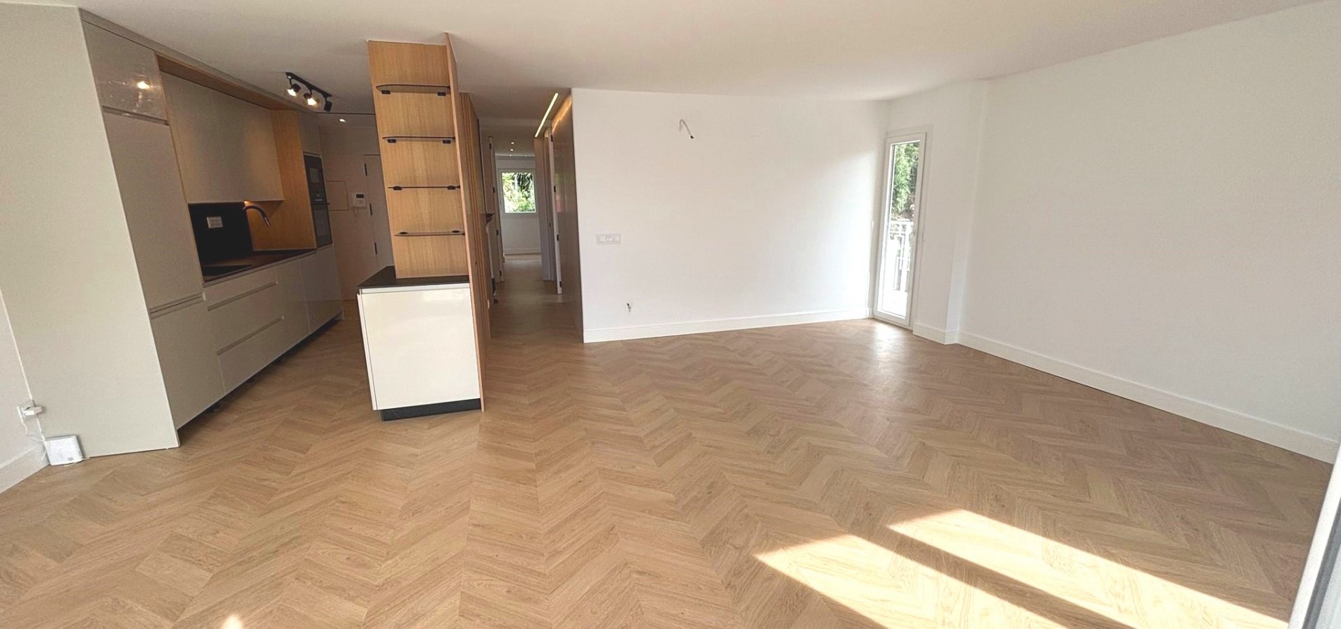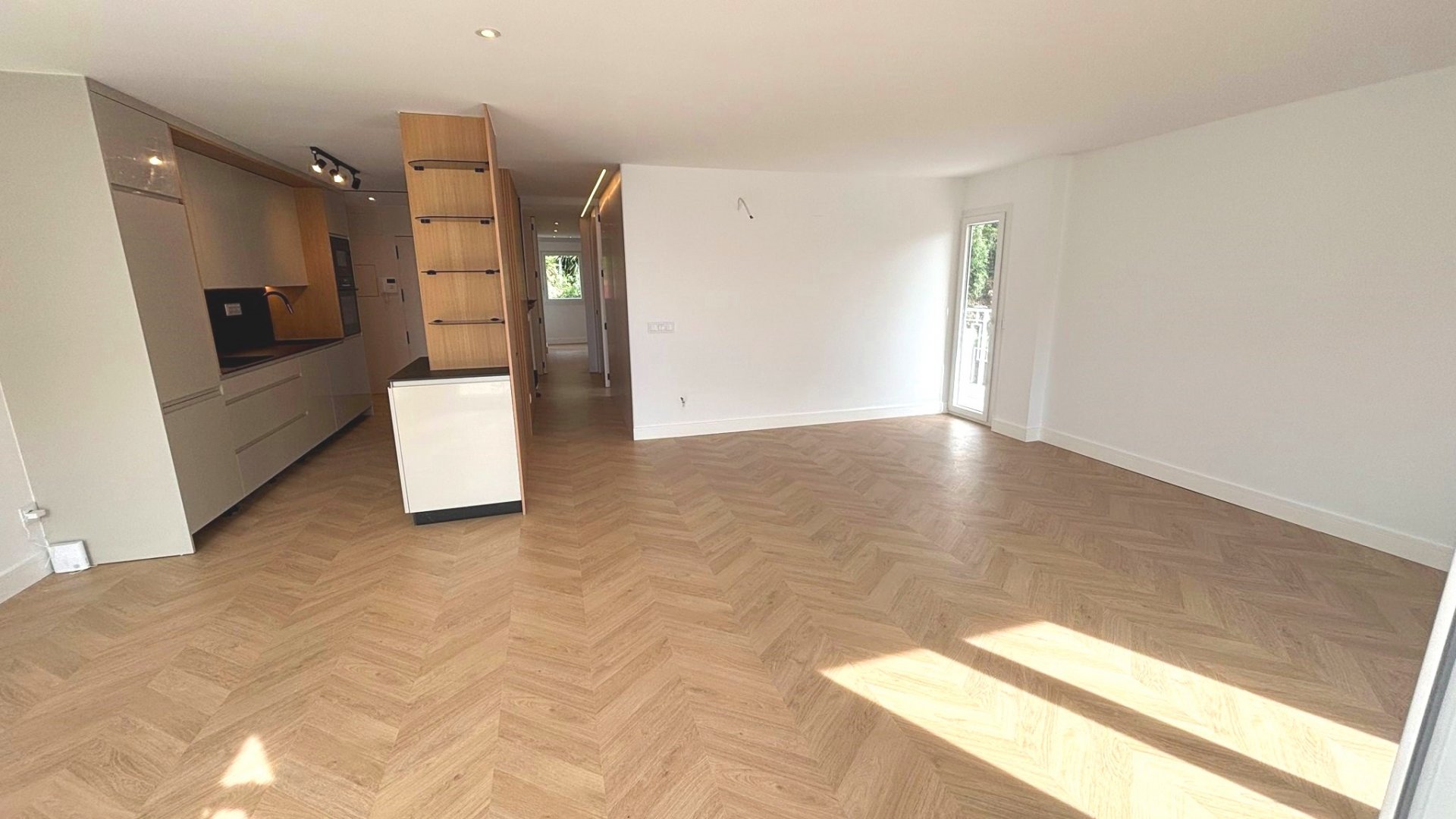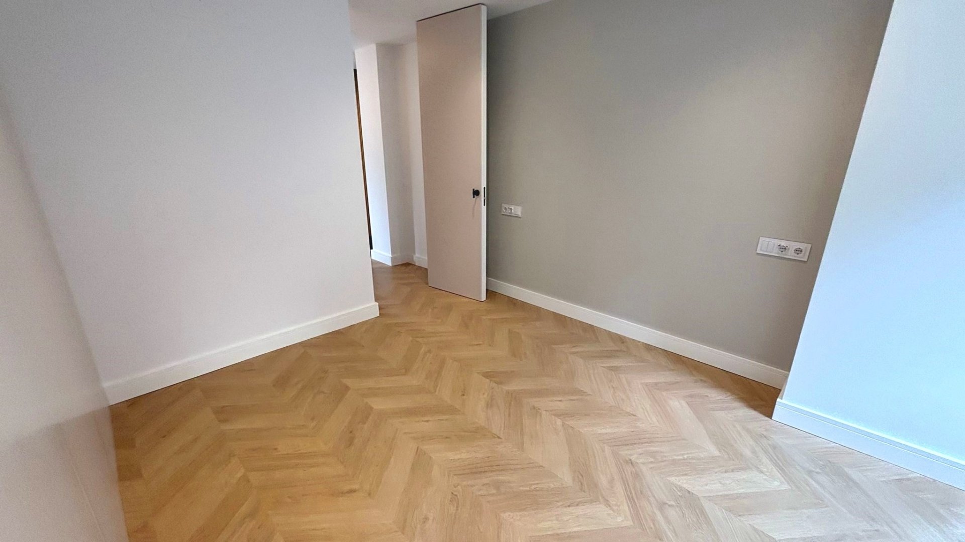 Tarima flotante noble colocada en espiga, que aporta un estilo clásico y elegante de gran calidad