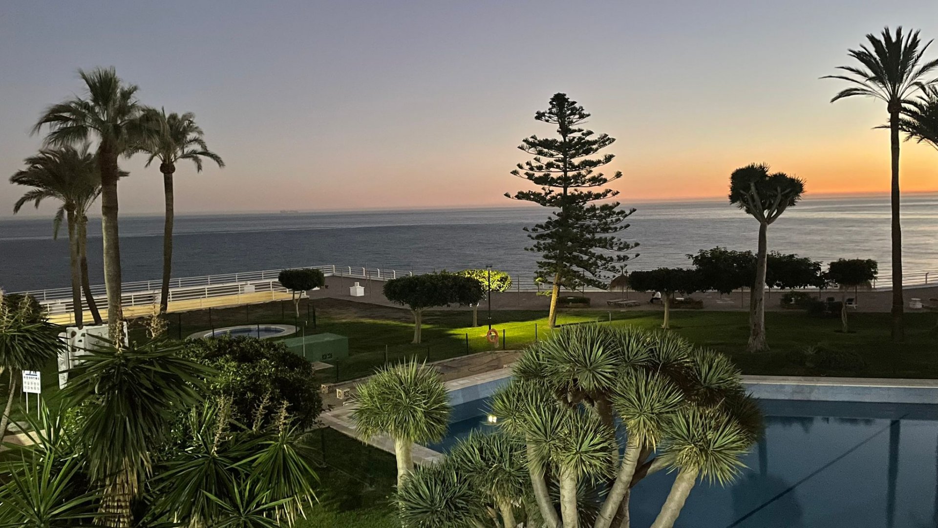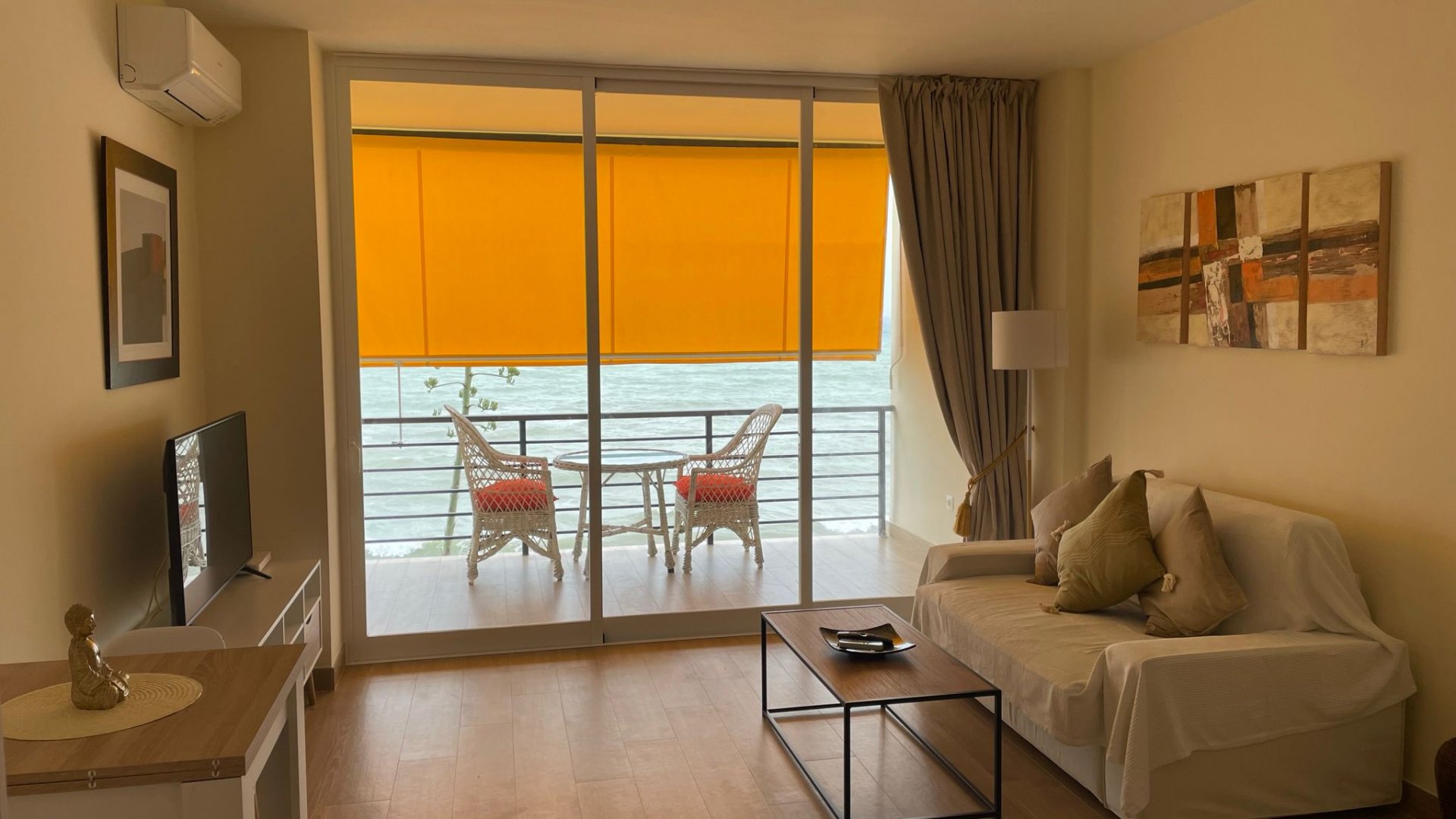 Destaca su terraza con toldos y bonitas vistas al mar, perfecta para disfrutar del clima de la Costa del Sol.