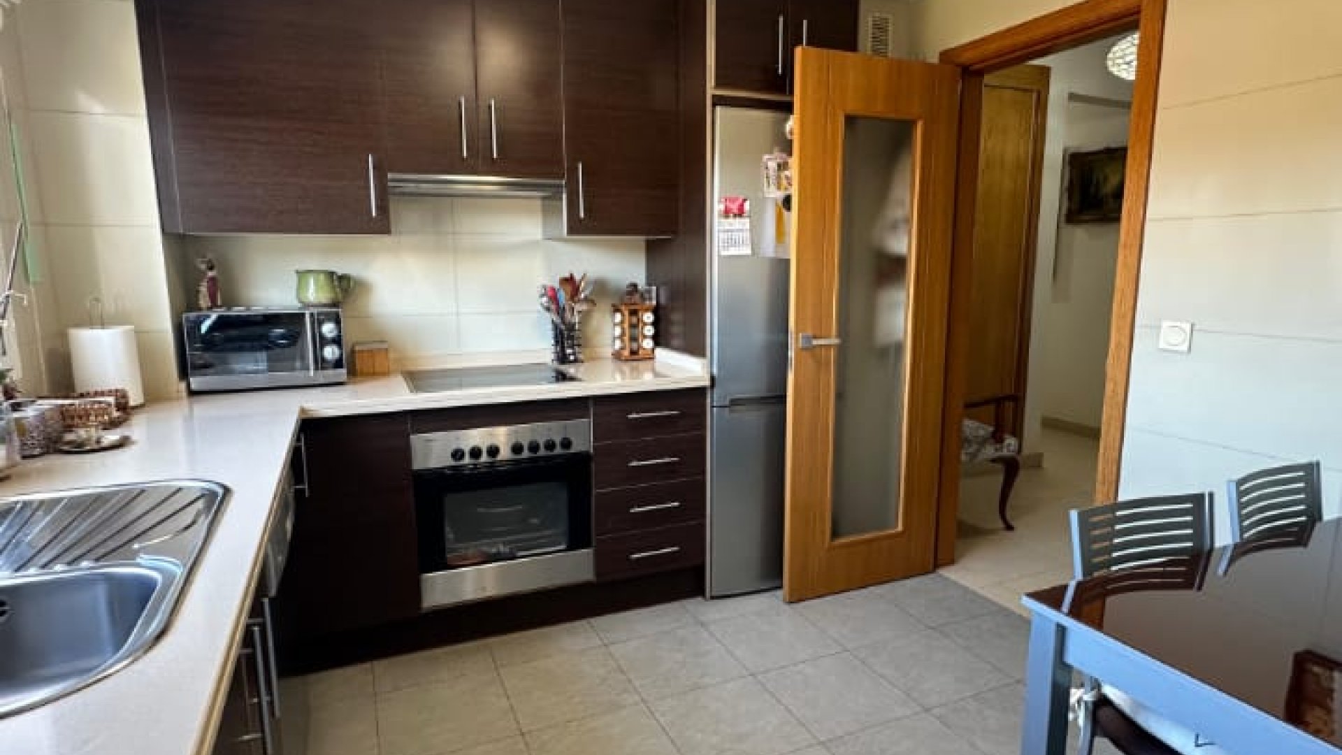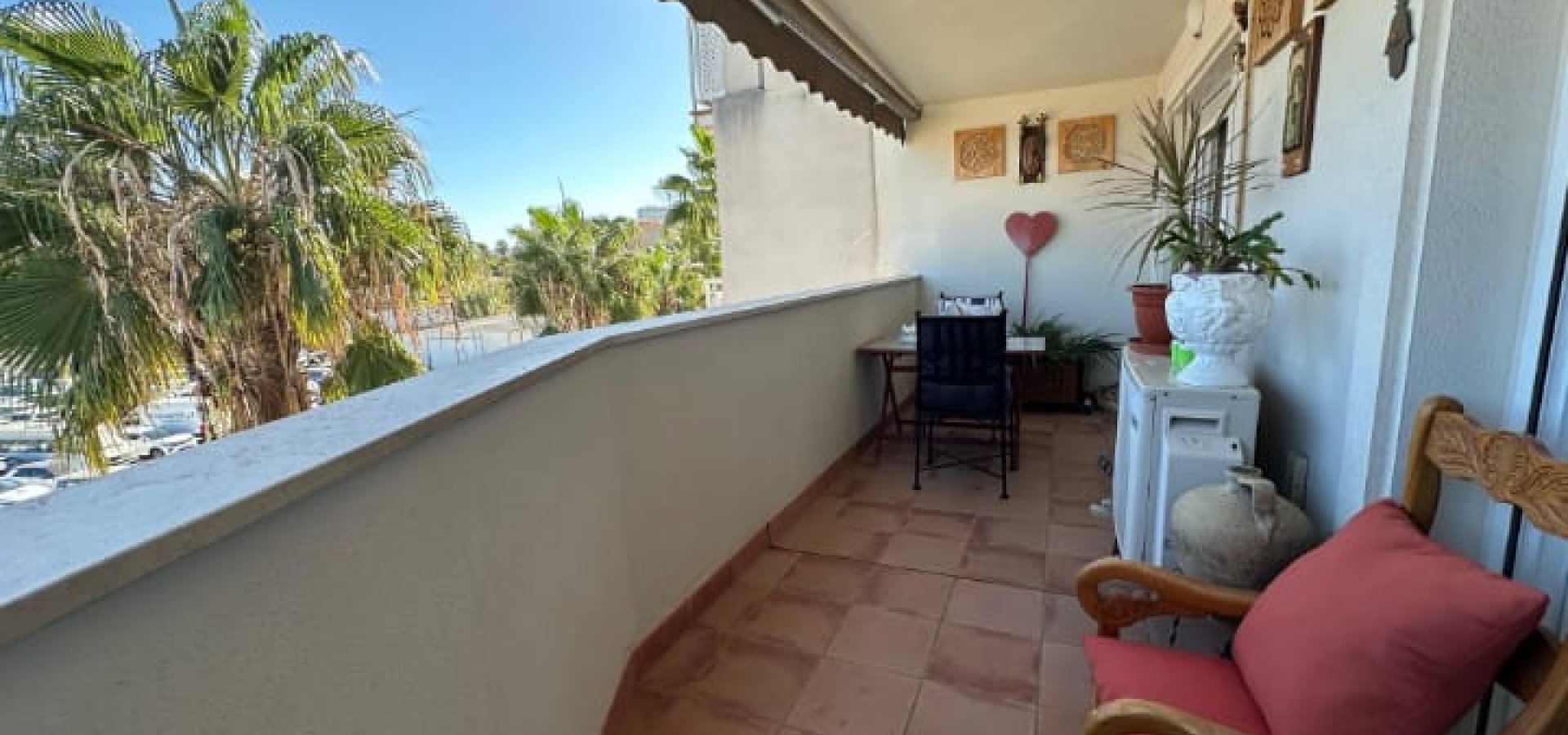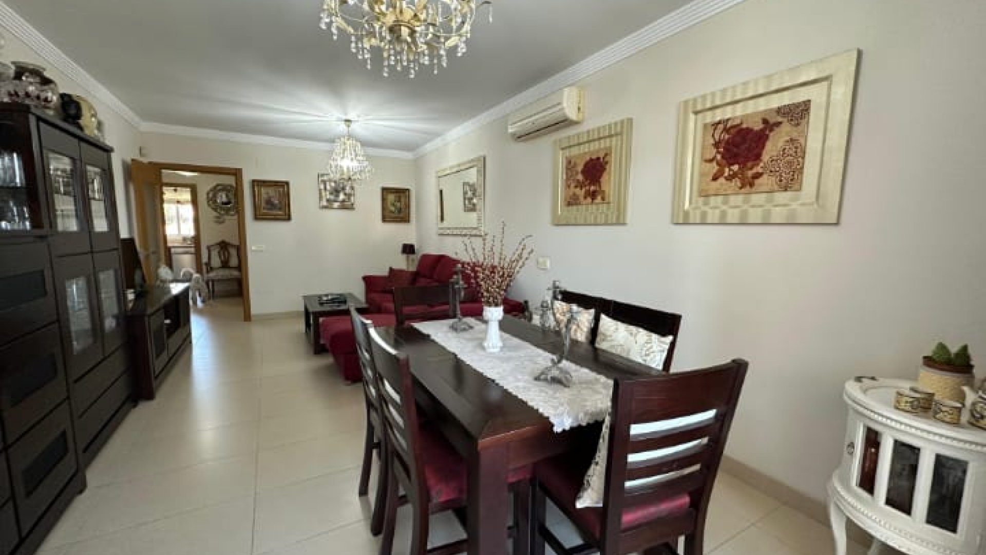 La vivienda dispone de 3 dormitorios con armarios empotrados y cajoneras, 2 baños completos (uno de ellos en suite), y un amplio hall de entrada con armario doble empotrado. Cuenta con salón-comedor muy luminoso con acceso a terraza acristalada con grandes ventanales de climalit, cocina totalmente equipada y lavadero independiente. La vivienda se vende amueblada y dispone de aire acondicionado. Orientación norte y sur, lo que garantiza buena ventilación y luz natural.