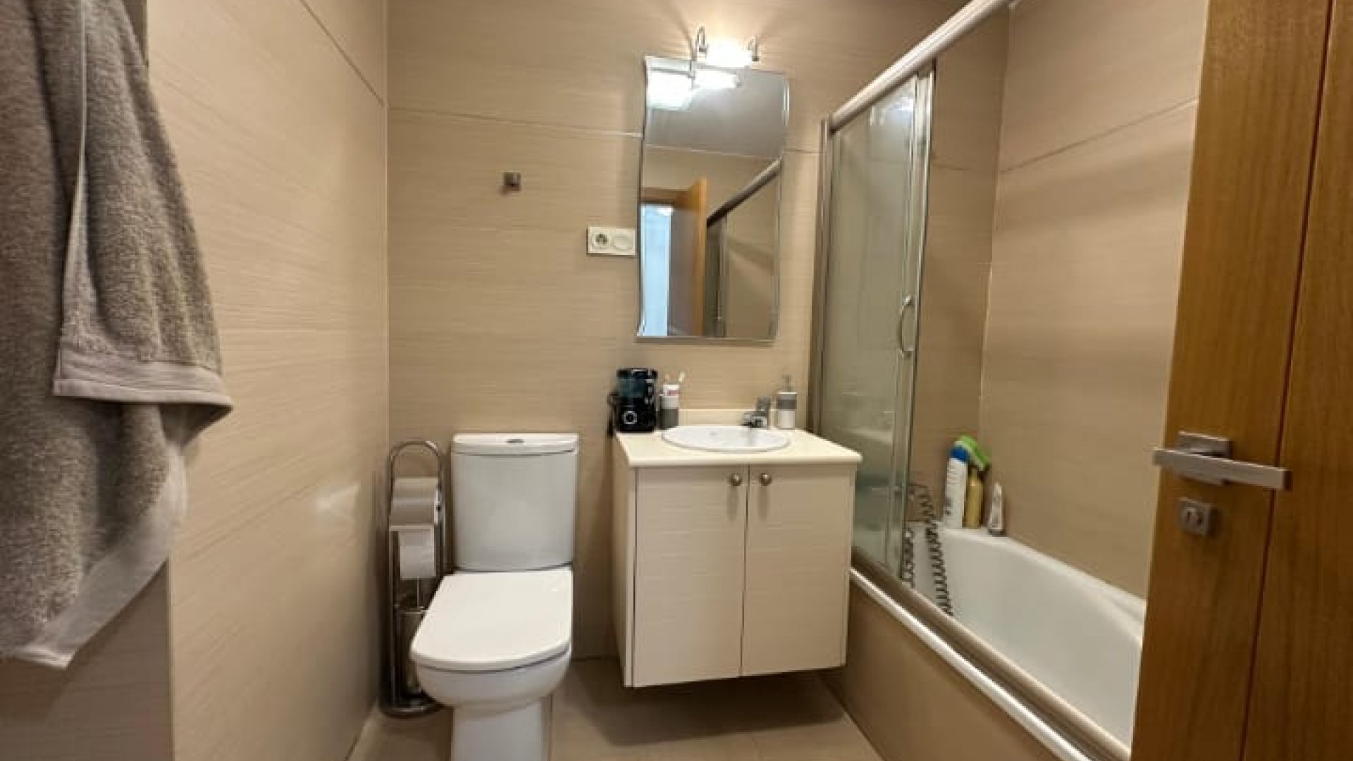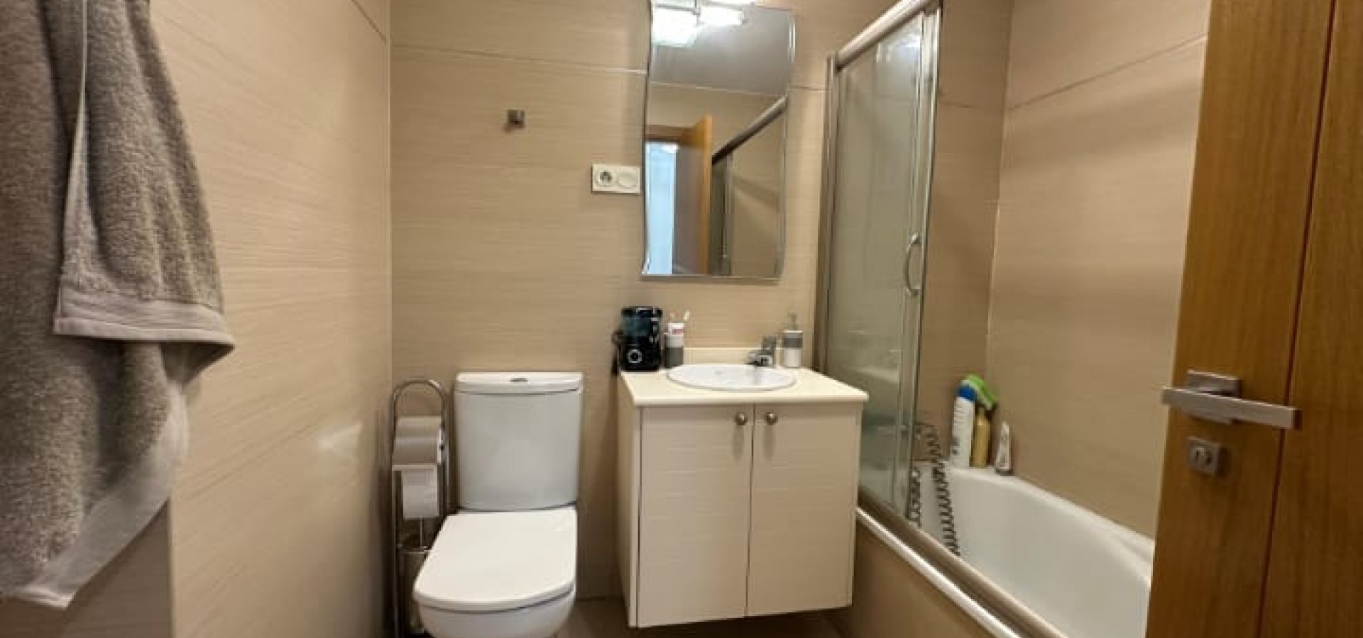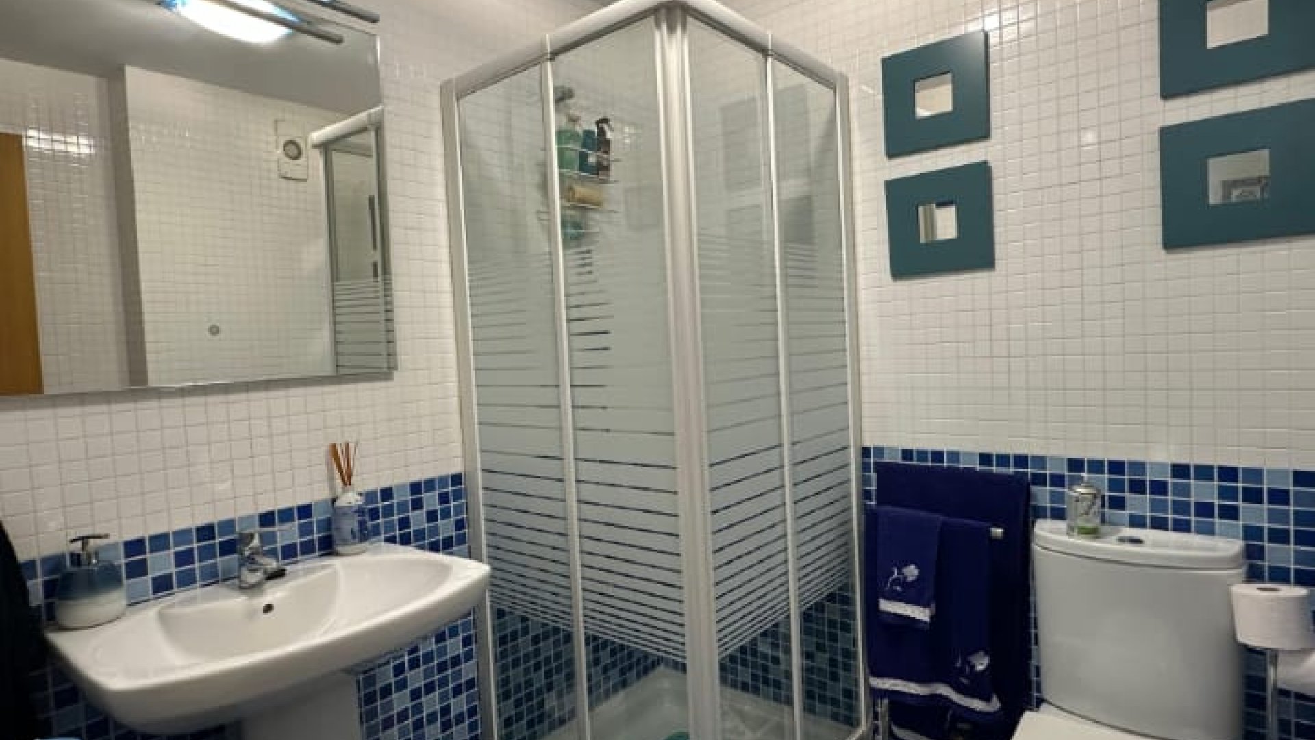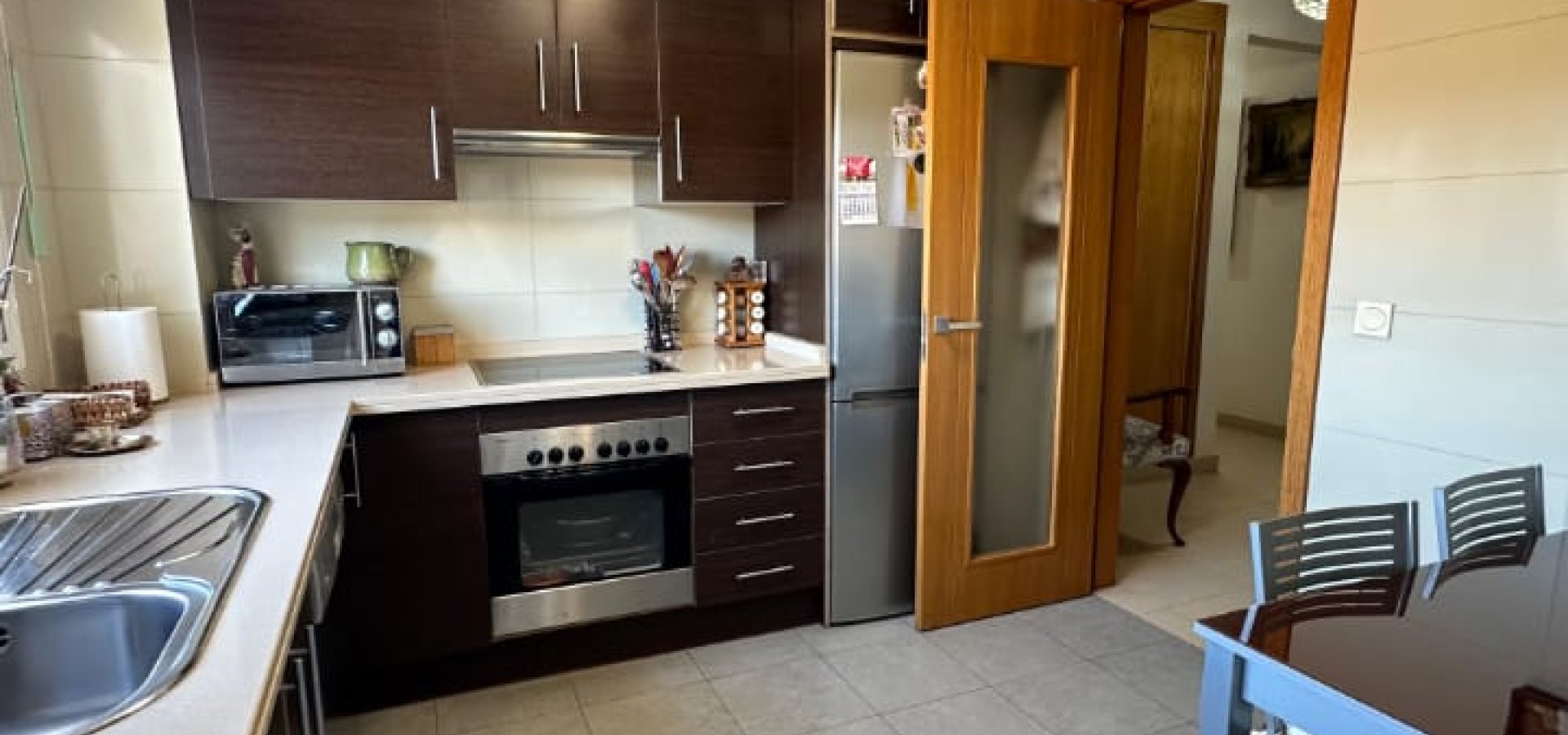 La vivienda dispone de 3 dormitorios con armarios empotrados y cajoneras, 2 baños completos (uno de ellos en suite), y un amplio hall de entrada con armario doble empotrado. Cuenta con salón-comedor muy luminoso con acceso a terraza acristalada con grandes ventanales de climalit, cocina totalmente equipada y lavadero independiente. La vivienda se vende amueblada y dispone de aire acondicionado. Orientación norte y sur, lo que garantiza buena ventilación y luz natural.